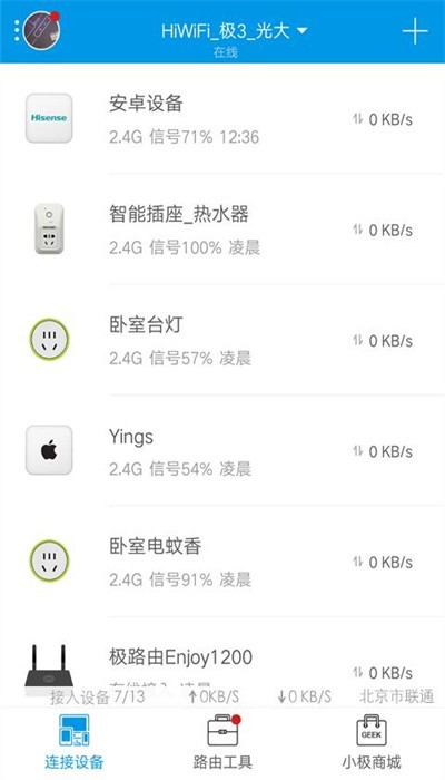 极路由是一款极路由配备及调试软件,极路由app能够帮助用户在手机上即可管理自己的路由器,在线查看路由状态,链接设备与管理限制设备等功能!