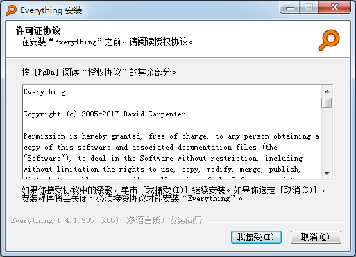 在安装“Everything”之前,请i阅读授权协议。