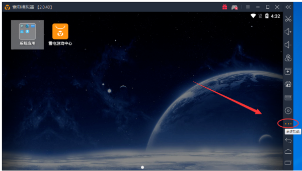 1、运行打开雷电安卓模拟器,选择右侧工具栏中的【键盘操控】或是选择第二个图中的【...】打开选择键盘操控。