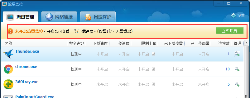 1、360流量监控能够实时显示每个程序的下载和上传速度,以及已下载和已上传的流量数据。