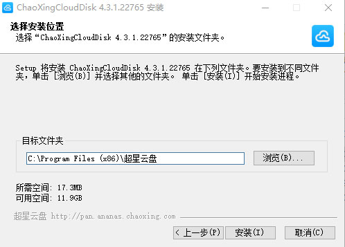 5、选择软件安装位置,默认C盘,可进行更改,确认软件安装路径后,点击安装。