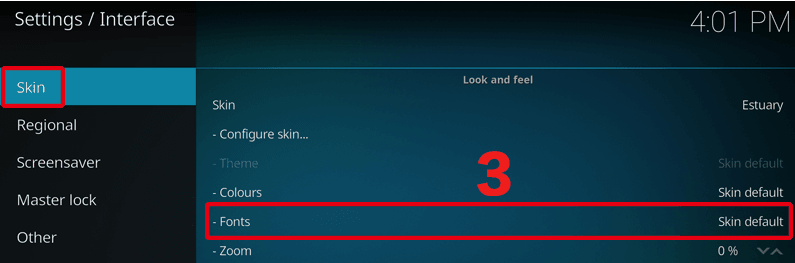 3.点击『Skin』(皮肤)选项中的『Fonts』(字体)