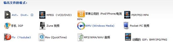 2、除了常见的MP4、AVI、WMV、MOV、3GP等视频格式外,还支持FLV、MPEG、DVD、MP3及常见图片格式。