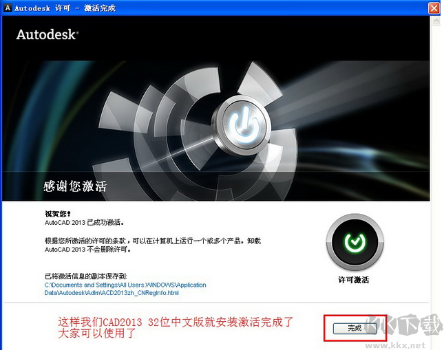 6、CAD2013软件32位安装激活完成。