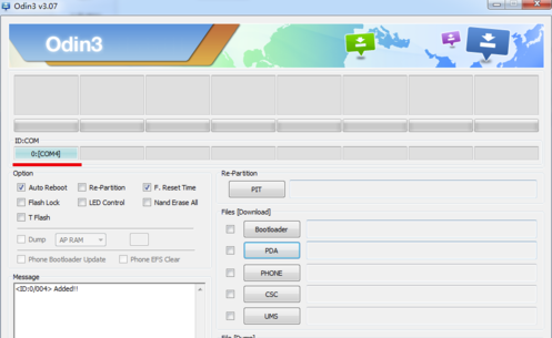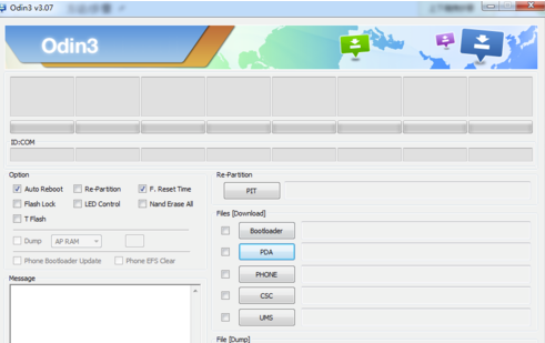 2、这时候Odin3 v3.07已经是准备刷机的状态了