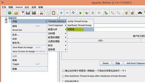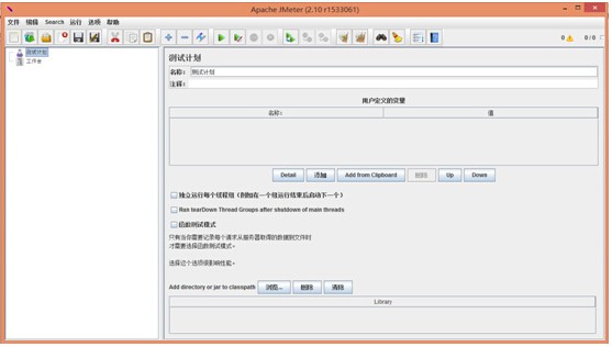 见下图所示:Jmeter运行在目录 \apache-jmeter-2.10\bin下jmeter.dat文件,双击打开进入Jmeter界面