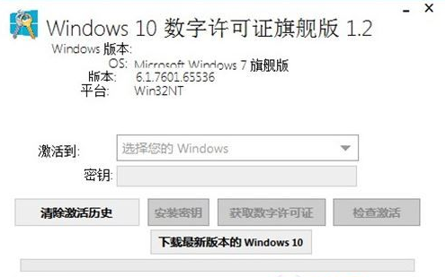 2、工具会自动检测你的Win10版本,如不对请手动选择,点击获取数字权利许可按钮即可;