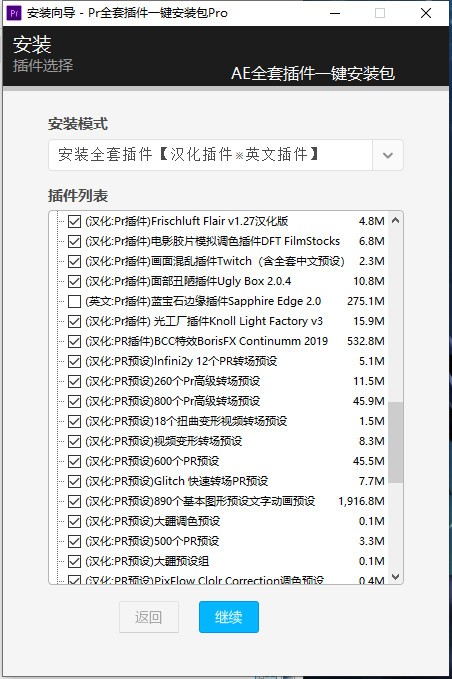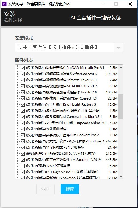 PR全套插件一键安装包Pro是针对Premiere这款剪辑软件所推出的插件包合集,该插件包用过超丰富的pr预设插件,如果是英文插件则自动搭配了汉化包,使用安装简单,只需一键安装(可选装),AE全套脚本一键安装包,使用就是这么简单方便!