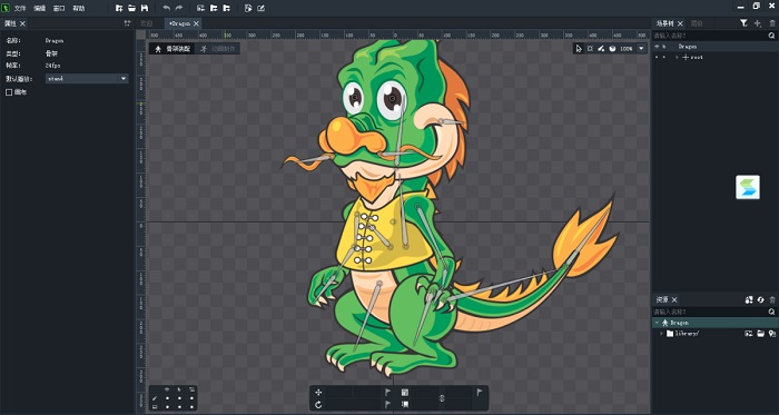 DragonBones是一款超实用的免费开源2D骨骼动画软件,这款软件可以通过搭建骨架和绑定骨骼动画的方式来帮助用户轻松制作出流畅度动画。比如导入一张人物图片,给它添加手臂、腿等骨骼结构,然后通过移动骨骼就能让人物抬手、走路,而不用一帧帧手绘,省时又自然。 另外它的资源管理也很贴心,支持导出纹理集降低游戏内存,还能导成Unity、Cocos等引擎直接用的格式,使用起来超方便!多下软件园给大家分享DragonBones中文免费版下载,对这款2D骨骼动画制作软件有需要的朋友赶紧来下载吧!